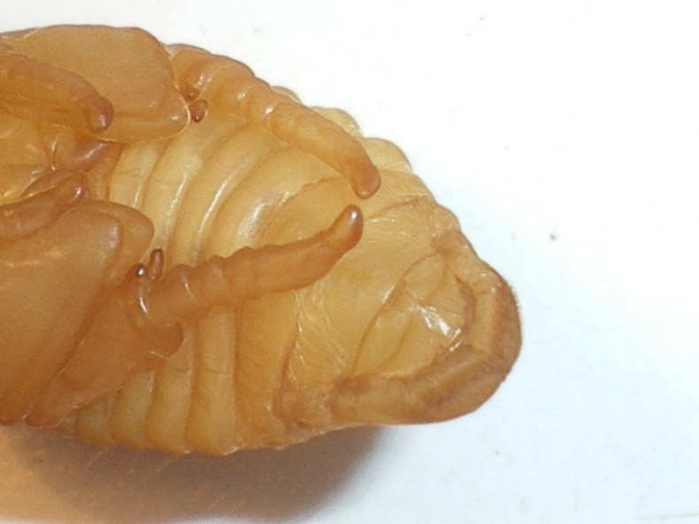 Poi due belle pupe alloggiate all'interno della vecchia cuticola larvale.