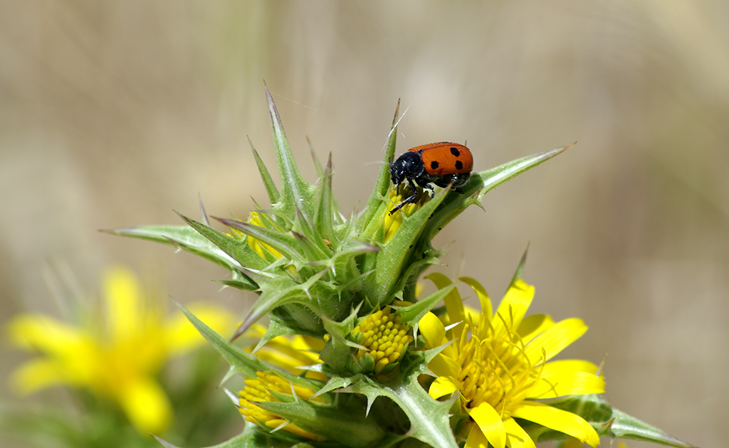 Lungo il tragitto mi fermo in quattro punti a cercare insetti. In uno di questi, oltre a vari Meloidi, Scarabeidi, qualche coprofago su sterco di asino, vedo anche un fringillide che saltellava nell’erba ma non volava; avvicinatomi mi sono accorto che da come teneva un’ala doveva averla probabilmente rotta.