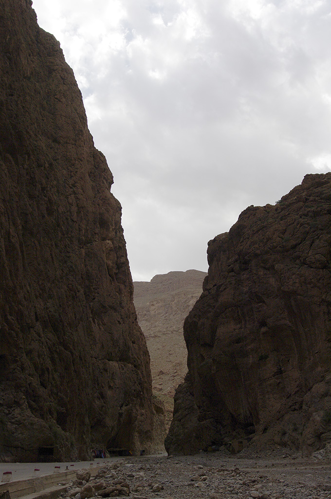 Nel tratto tra la cittadina di Tineghir e le gole si vedono scorci paesaggistici molto belli e vari. Una volta arrivato alle gole, la strada ed il torrente che le scorre di fianco sono “incastonati” tra due pareti altissime di roccia; alla base di quella sull’altro lato del torrente (rispetto alla strada) vi sono due alberghi, uno dei quali è quello che mi è stato indicato.
