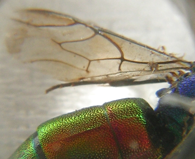 se come sembra dalla foto dorsale, il margine visto di profilo non è piano e affilato, ma vistosamente ripiegato in direzione ventrale, dovrebbe essere Chrysura rufiventris rufiventris (Dahlbom, 1854)