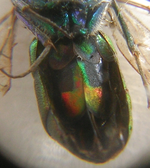 Ciao Andrea, hai visto bene... l'addome non è verde, anzi è più sul rosso (con dei lievi riflessi blu che non sono riuscita a catturare). Metto un'altra foto che avevo scartato perchè meno a fuoco.
