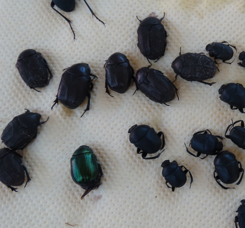 le prime sono di Giugno , per la massiccia e costante presenza di cavalli sul sentiero e le loro abbondanti ....... :mrgreen: mi sono divertito a .... :ses :ses stanando alcuni Histeridi molti Coprofagi , un sacco di Onthophaghus , Gymnopleurus , euoniticellus e due specie diverse di Onitis ( o Cheironitis .. ) uno in foto l'altra specie non fotografata ha elitre e protorace completamente neri senza alcuin segno piu' chiaro.