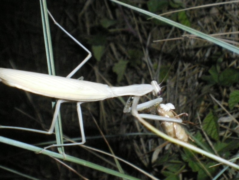Anche a me è capitata una scena simile, ma la mantide era attiva in mezzo ad un prato a Sappanico (Ancona) la sera del 28.VIII.2012 dove ero andato a cercare femmine di Vesperus...