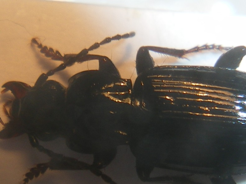 A prima vista sembrerebbe uno Pt. oblongopunctatus, ma mi sembra un po' troppo lucido. Le fossette basali del protorace dovrebbero essere punteggiate anche nell'intorno, mentre qui sembra tutto liscio. La terza interstria dovrebbe avere 5 o 6 punti, qui mi sembra di contarne 4. :?