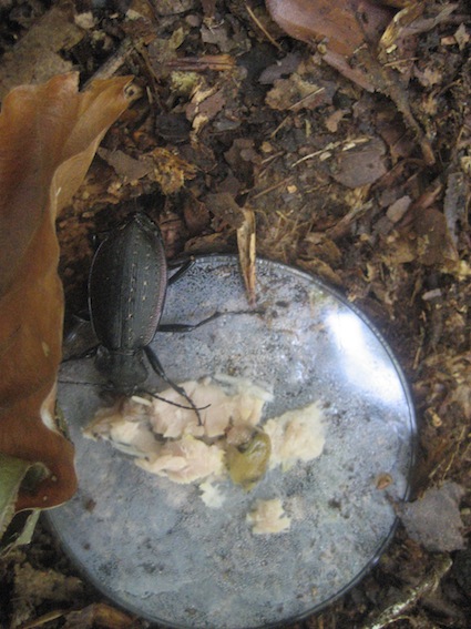 questo Carabus, attratto da un'esca, era piuttosto grosso anche se non saprei dire esattamente quanto.