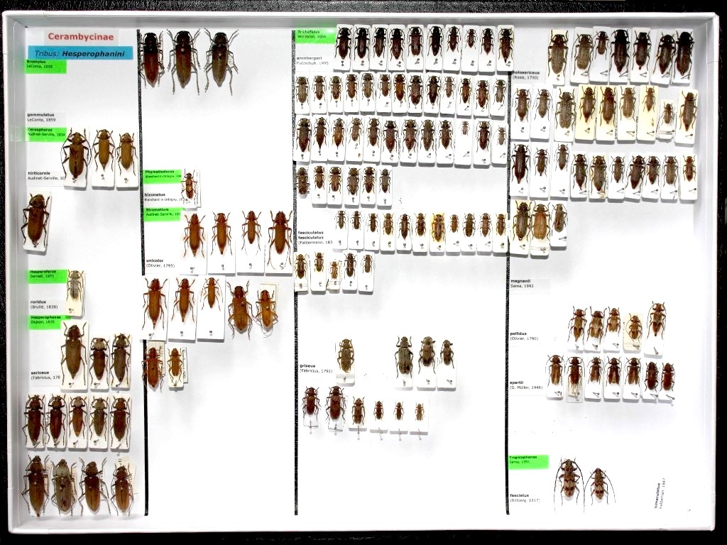 Nei mesi scorsi, dopo aver costruito un po' di scatole, ho risistemato la collezione dei Cerambycidae terminando proprio oggi. Ecco come si presenta.