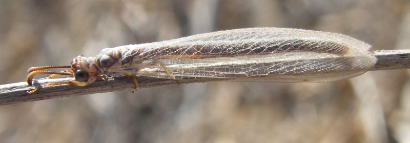 Di un sorprendente ritardo stagionale, e sembra anche un esemplare neosfarfallato, oltre ad essere maschio quindi di non lunga vita. Myrmeleon hyalinus Olivier, 1811 (ebbravo Marco :) ).