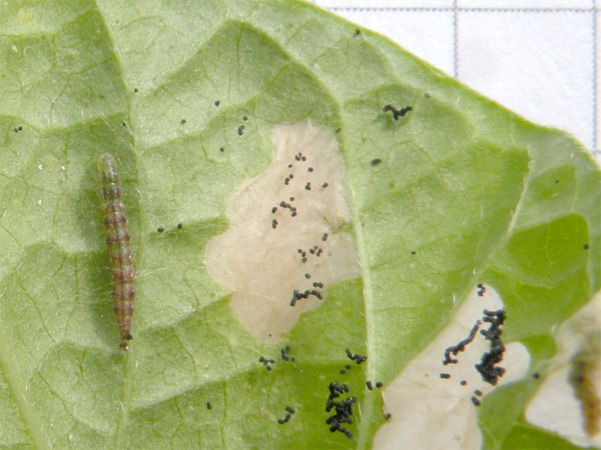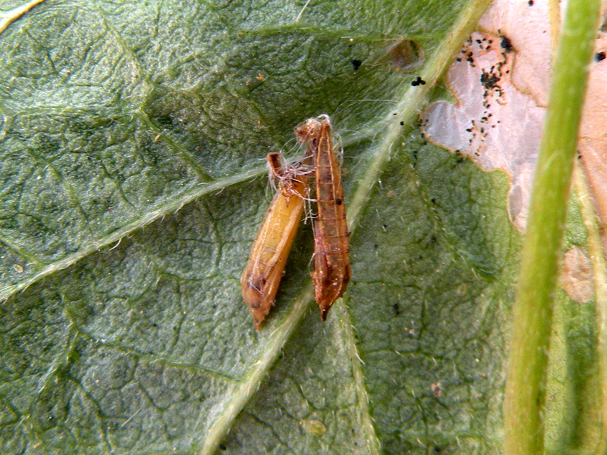 Si tratta di un minatore fogliare molto vorace, che ho rilevato sulla pianta di Ipomea purpurea. Lo sfarfallamento è avvenuto in questi giorni. Credo che l'identificazione sia corretta, ma la sottopongo comunque al vostro giudizio.