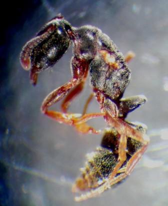 L'altra formica è una mirmicina, ma non riesco a capire se una Temnothorax (= Leptothorax, in parte) o un Tetramorium (così non posso escludere questo genere). Anche qui qualche foto dove si veda meglio ad esempio l'esemplare dal dorso e/o tutto l'animale di profilo, sarebbe utile. Ripeto però: asciuga gli esemplari (basta un po' di carta scottex).