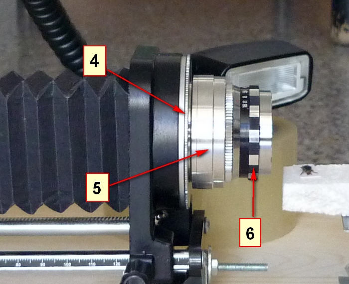 6) Obiettivo da ingranditore con diaframma manuale (fondamentale!) comprato per 6-7 euro se non sbaglio