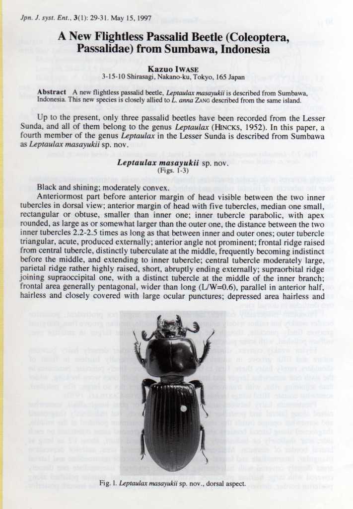 Iwase, K., 1995. A new Leptaulax species (Coleoptera, Passalidae) from Luzon, the Philippines. Spec. Bull. Jpn. Soc. Coleopterol., Tokyo, (4): 377-380.