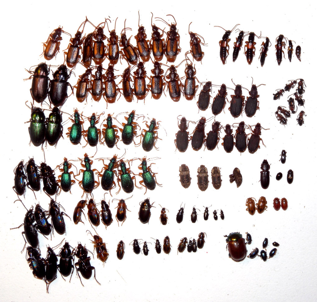 Siè già parlato sul forum del vantaggio che deriva dal cacciare in un posto che sia allagato, per il fatto che si riducono notevolmente i ripari.La cacciata di questa mattina ne è la riprova.In questo piccolo boschetto di frassini sono stato varie volte a cacciare;le specie che questa mattina ho catturato in numero, in altre occasioni di "non allagamento", le ho trovate sempre assai sporadiche.Una cosa che mi ha colpito è il fatto che questa mattina tra le catture non c'è nemmeno una specie di Tenebrionide, che pure sotto alle stesse cortecce in situazione di "non allagamento" ho sempre trovato in svariate specie. L'ambiente stamani si presentava così. Ed ecco una vista d'insieme delle catture.