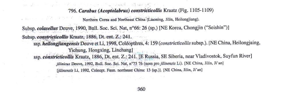 L'esemplare del Nord Ovest Corea (Pyongan Buk-do) dovrebbe dunque essere C. (Acoptolabrus) constricticollis pihyonensis Deuve & Li, 1998.