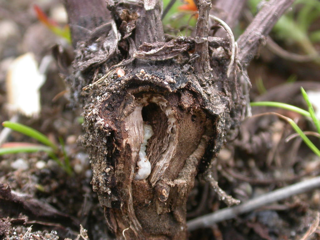 A volte capita di mettere allo scoperto le larve, che si trovano o sulle radici oppure alla base: