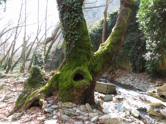 Qui ai bordi del torrente si trovano mucchi di foglie marcescenti sotto le quali pullulano le larvone di Cetonia e Potosia ( le ho in allevamento in Grecia vediamo cosa ne esce, ogni 10 cm ne trovavo 3 / 4