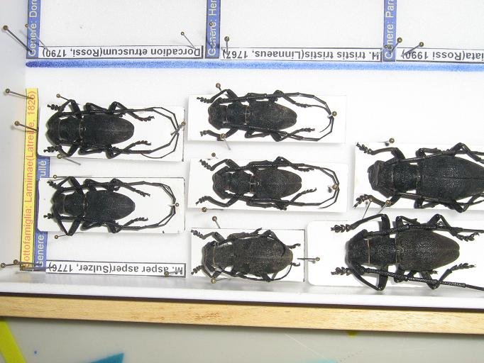 Ho risistemato un po, questa cassetta è un misto di Lepturinae, Lamiinae e Spondylidinae ma è da riempire ancora un bel po. Ho messo i cartellini con la specie o eventuale ssp di lato per consentire più spazio.