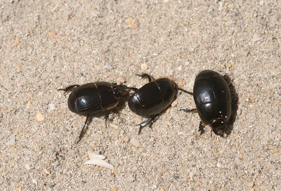 Gironzolavo stamattina fra le dune di Capo Feto, amena località ben ricca di fauna che si trova a pocha distanza dalla nota Mazara del Vallo. orbene nel retroduno assisto a una scena assai curiosa: questi tre allegri isteridi (Pactolinus?) che si rosicchiavano vicendevolmente le zampette...
