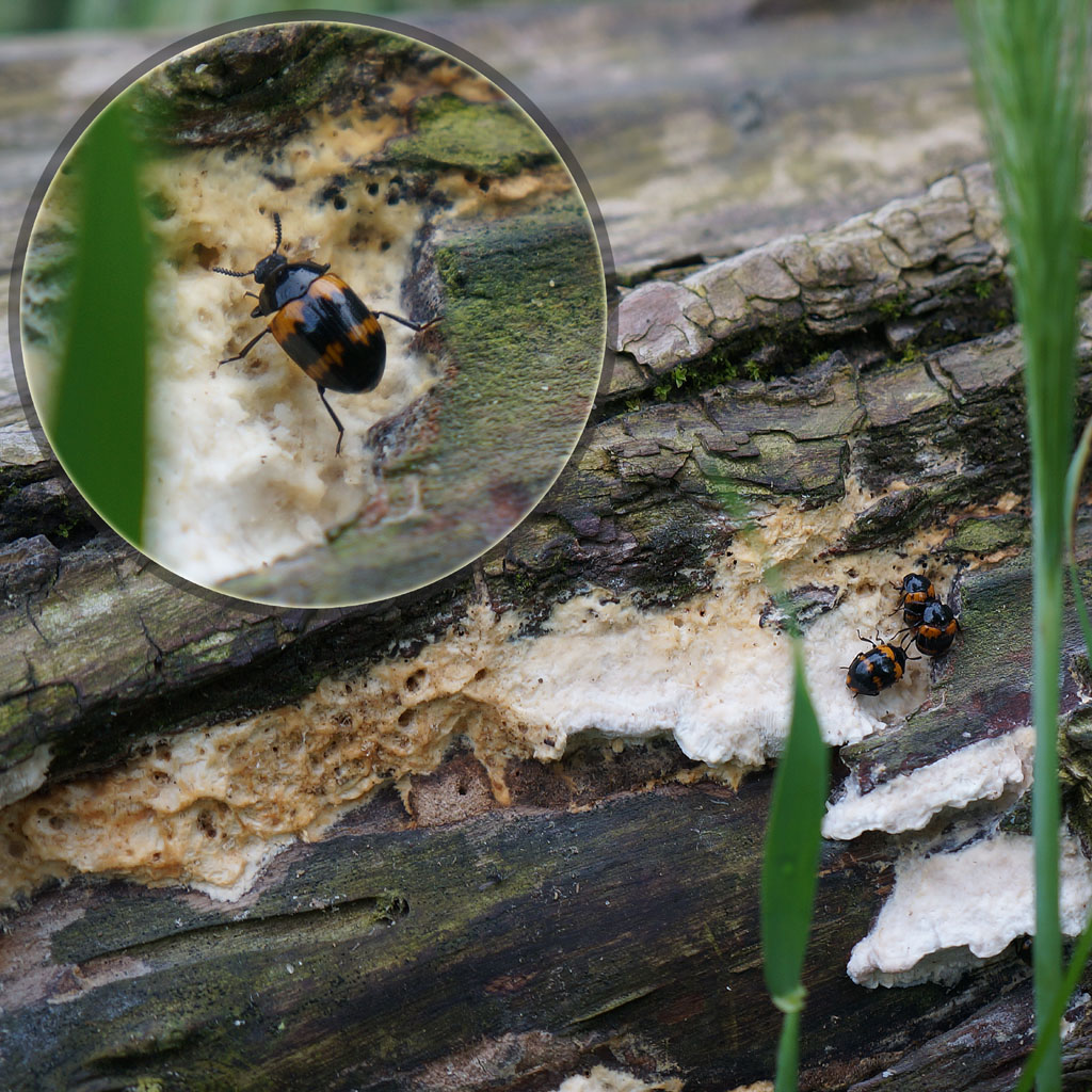Ieri (17 Maggio 2013), mi sono imbattuto in una colonia di questi coleotteri che si nutrivano del fungo che cresceva su di un tronco d'albero marcescente. Di che specie si tratta?