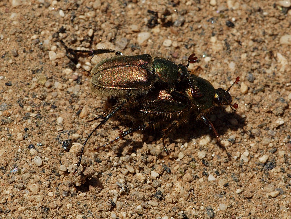 Le femmine arrivano in volo e si posano subito a terra, di preferenza in punti col terreno scoperto (in questo caso, in mezzo alla strada sterrata). I maschi volano invece senza sosta tutto intorno, con le classiche traiettorie a zig-zag o in cerchi irregolari. Appena atterra, la femmina inizia a camminare con un'andatura simile a quella dei Pentodon, ma molto più rapida. Uno o più maschi, nel giro di qualche secondo, arrivano in volo e si buttano a terra, o direttamente sulla femmina, o nelle vicinanze, e poi cercano di raggiungerla correndo sul terreno. Mi è capitato di vedere una femmina con 4 maschi che le correvano dietro. L'inseguimento dura pochissimo perchè i maschi sono molto più veloci, e nel giro di qualche secondo dall'atterraggio della femmina, c'è già un maschio sopra.