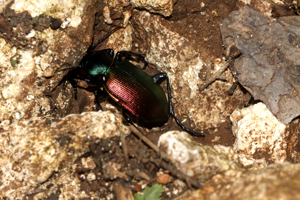 Uno splendido esemplare maschio di Calosoma sycophanta che tenta di passare inosservato