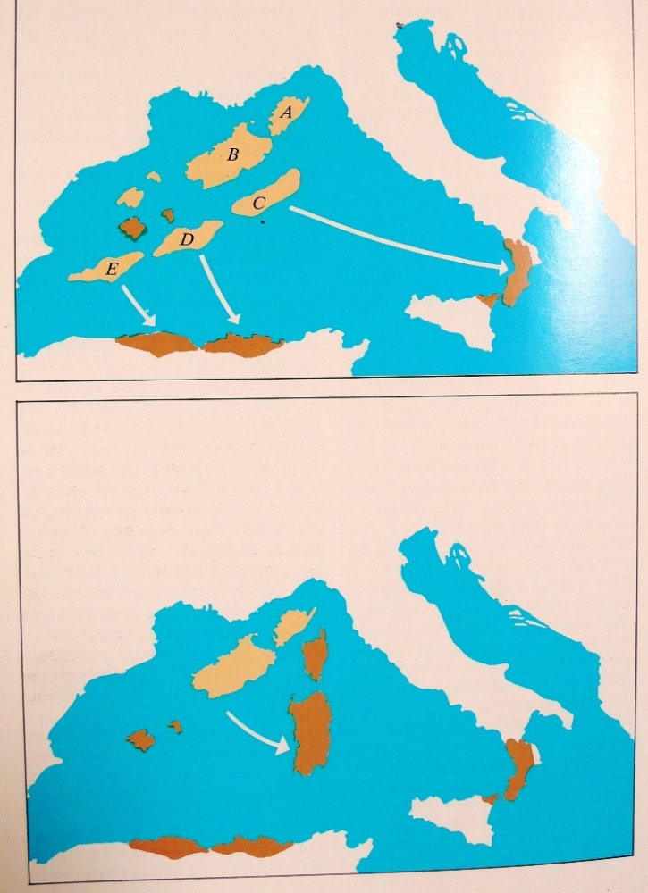 Fino a poco tempo fa, sulla scia della teoria della dispersione, si riteneva, a torto, che tutte le specie sarde e siciliane presentanti specie vicarianti nell'Africa del Nord fossero specie di origine africana migrate da noi attraverso un ipotetico ponte siculo-africano o attraverso lo stretto di Gibilterra facendo il periplo del Mediterraneo occidentale: in realta è vero tutto l'opposto,e cioè che le specie nordafricane sono di origine europea (intendendo come europei i ceppi originatisi nell'Europa composta dall'oligocene), non migrate, ma trasportate nell'Africa del Nord dalle microzolle che si spostavano.