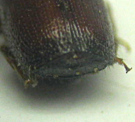 per determinare l'esemplare bisogna tu faccia una foto esattamente di lato, in modo da valutare se sulla declività elitrale vi sono sporgenze rivolte posteriormente ed eventualmente come sono conformate.