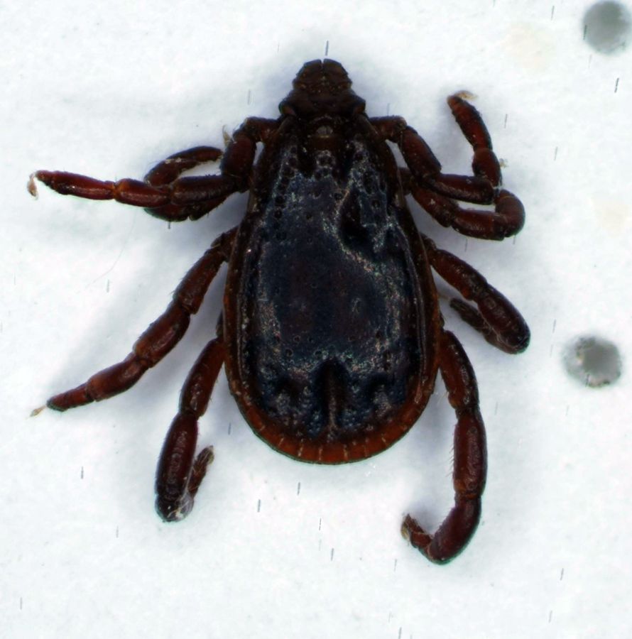 Questo è un maschio adulto di Ixodide. Quindi ha passato le due precedenti età nutrendosi di sangue di qualche vertebrato. Aspetto notizie su eventuali cani o altri animali domestici o ferali venuti a mancare recentemente. Intendo anche a cui è stato impedito l'accesso poco tempo fa, o morti, o spostati, insomma animali che prima c'erano ed adesso non ci sono più. O magari colonie di conigli selvatici.