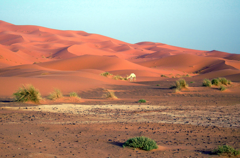 Un giovane dromedario quasi candido (forse albino?).