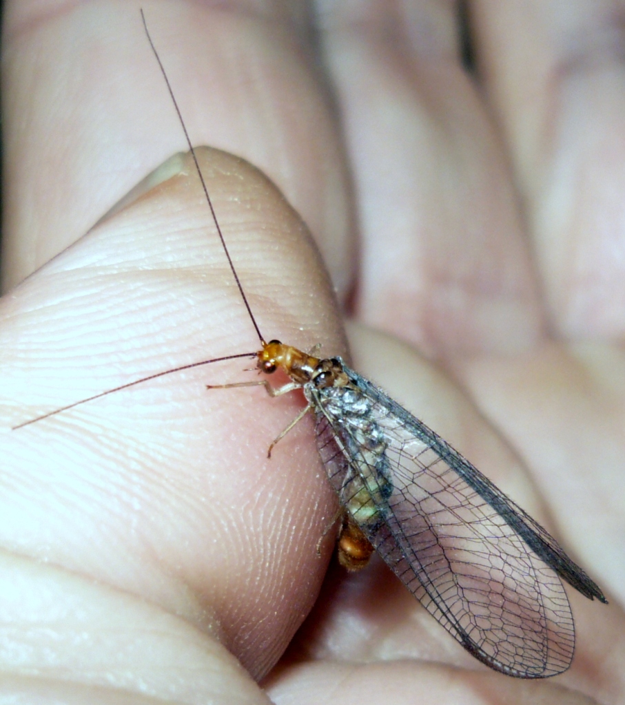 ...nel caso fosse necessario taxarla, anche se in pratica ci ha gia' pensato quello spiritosone di Marco, trattansi di Nothochrysa capitata (Neuroptera Chrysopidae)
