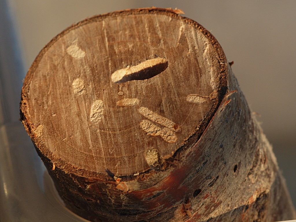 Il fusto, di circa 4 cm di diametro in questa sezione, col foro della larva