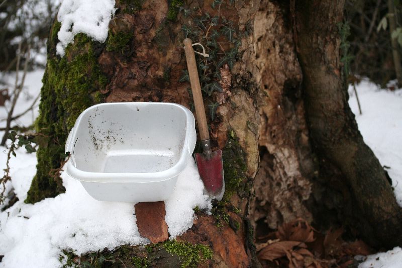 In 15 minuti sono arrivato, il tempo di parcheggiare, indossare un paio di robusti stivali, armarmi con l'attrezzatura necessaria e si inizia ! Come potete vedere, la neve regna ancora sovrana....