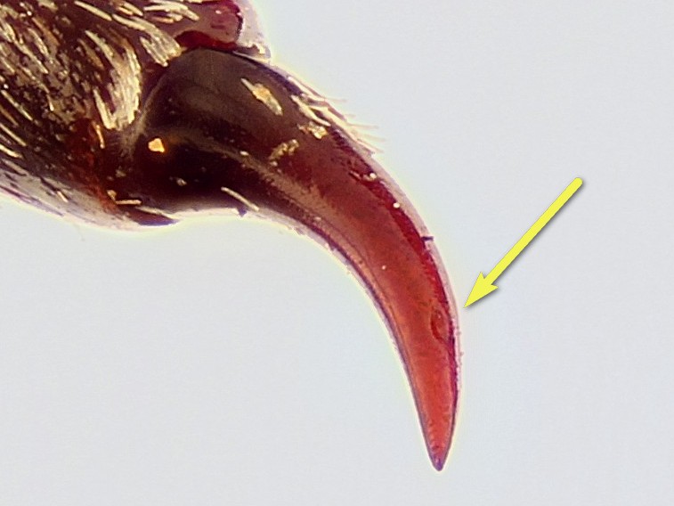 Mancano i canali che dovrebbero facilitare l'iniezione di veleno, ma il poro c'è, e mi sembra funzionale, inoltre l'espansione bulbosa dell'ultimo segmento c'è, anche se meno sviluppata che in albitarsis, e vista la forma del precedente articolo, il serbatoio di veleno potrebbe anche estendersi al penultimo antennomero, o comunque all'interno dell'articolazione (anzi, potrebbe essere proprio la compressione di questa articolazione, quando l'aculeo viene spinto nei tessuti dell'aggressore, a comprimere il serbatoio e far fuoriuscire il veleno, ma queste sono solo illazioni). Insomma, mi sembra probabile che anche questa specie possa iniettare il veleno, forse in modo meno efficiente dell'altra.