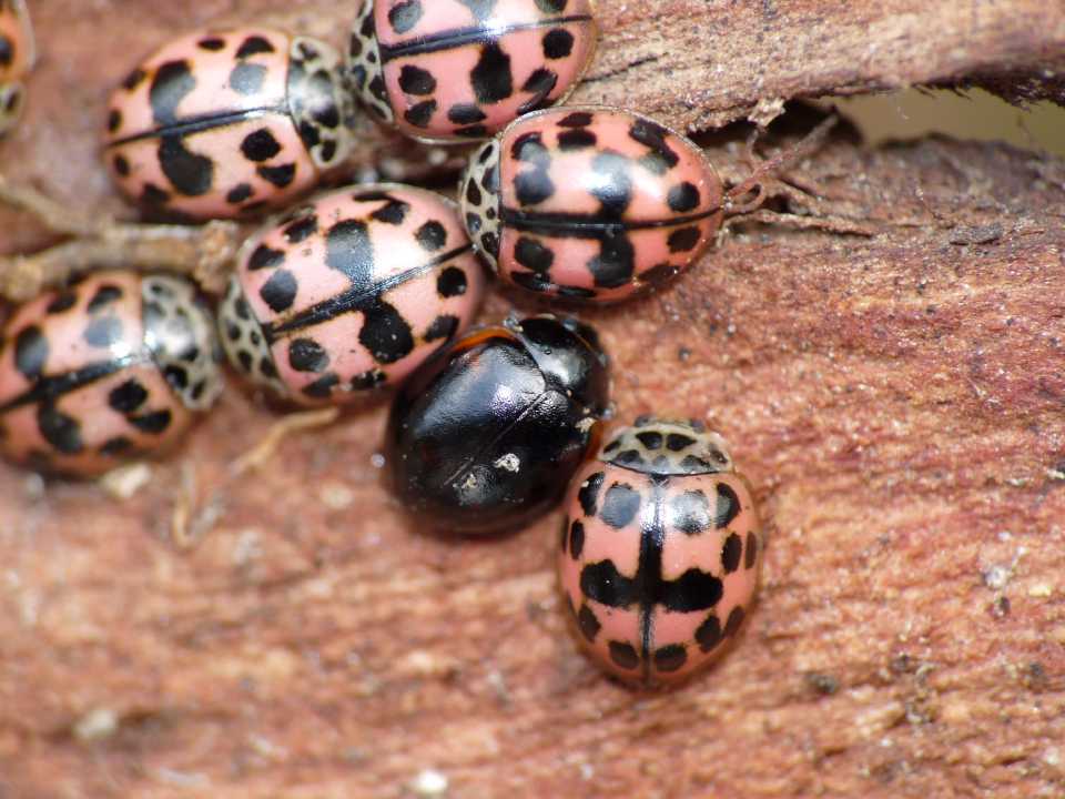 Per allietare questa discussione, posto alcune foto di assembramenti naturali di coccinelle (Harmonia axyridis e non) sotto la corteccia degli eucalipti