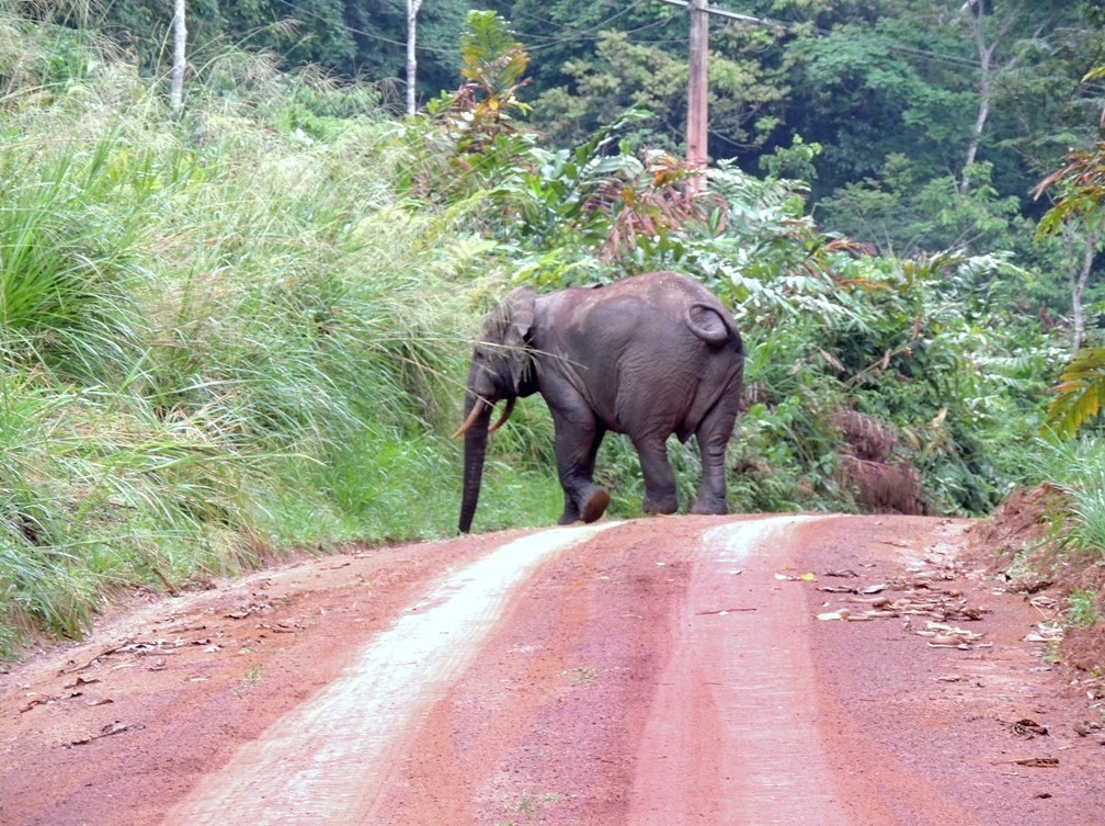 Dopo aver iniziato ad occuparmi qui degli animali osservati in Gabon, partendo dai più piccoli, ecco un'immagine del più ingombrante.