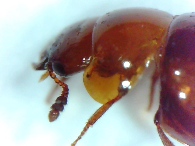Grazie Giovanni, dalle foto si direbbe che il 3° antennomero sia all'incirca lungo quanto il secondo e che dietro l'occhio non ci sia una tempia accentuata, questo dovrebbe escludere A. nigripenne; la dimensione che hai indicato, circa 2 mm, è un po' vaga... al di sotto dei 2,5 mm (seguendo le chiavi) arriviamo ad un vicolo cieco (A. agliyptoides dovrebbe avere sia nel maschio che nella femmina formula tarsale 4-4-4, mentre dalle ultime foto è evidente che il tarso anteriore consta di 5 articoli)... se la lunghezza dovesse essere invece sui 2,5 mm sarebbe compatibile con la mia prima impressione che possa trattarsi di Agathidium (Neoceble) varians Beck, 1817
