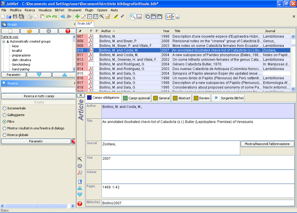 Se utilizzi già Access mi risulta che il riversamento in JabRef sarà molto facile. Nel programma i campi sono personalizzabili. Qui ti accludo due videate di un lavoro caricato. In quella qui sotto si leggono i dati bibliografici completi
