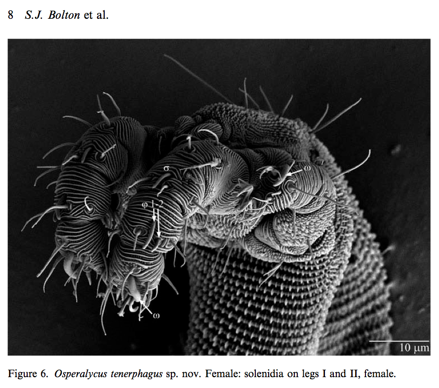 In questa pagina il primo Autore dell'articolo racconta alcuni particolari sulla scoperta di quest'acaro e sulle tecniche utilizzate per realizzare le fantastiche foto (che vi consiglio di guardare tutte all'interno dell'articolo) al SEM