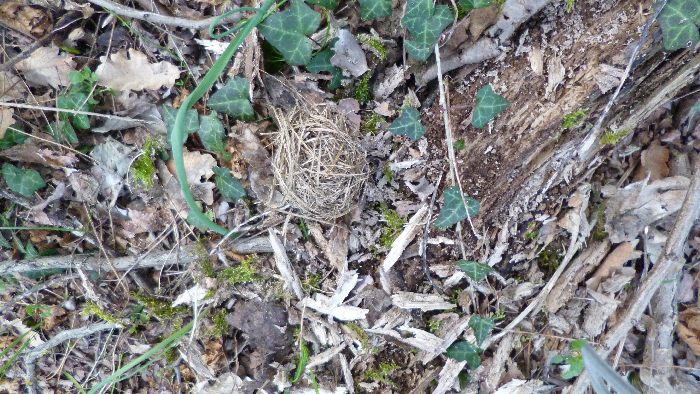 Le rare piantina di pungitopo attraggono la mia attenzione, appena di fianco trovo un nido di moscardino, a volte si trovano semplicemente appoggiati alla lettiera con ancora l'inquilino all'interno, ma purtroppo non era questo il caso.