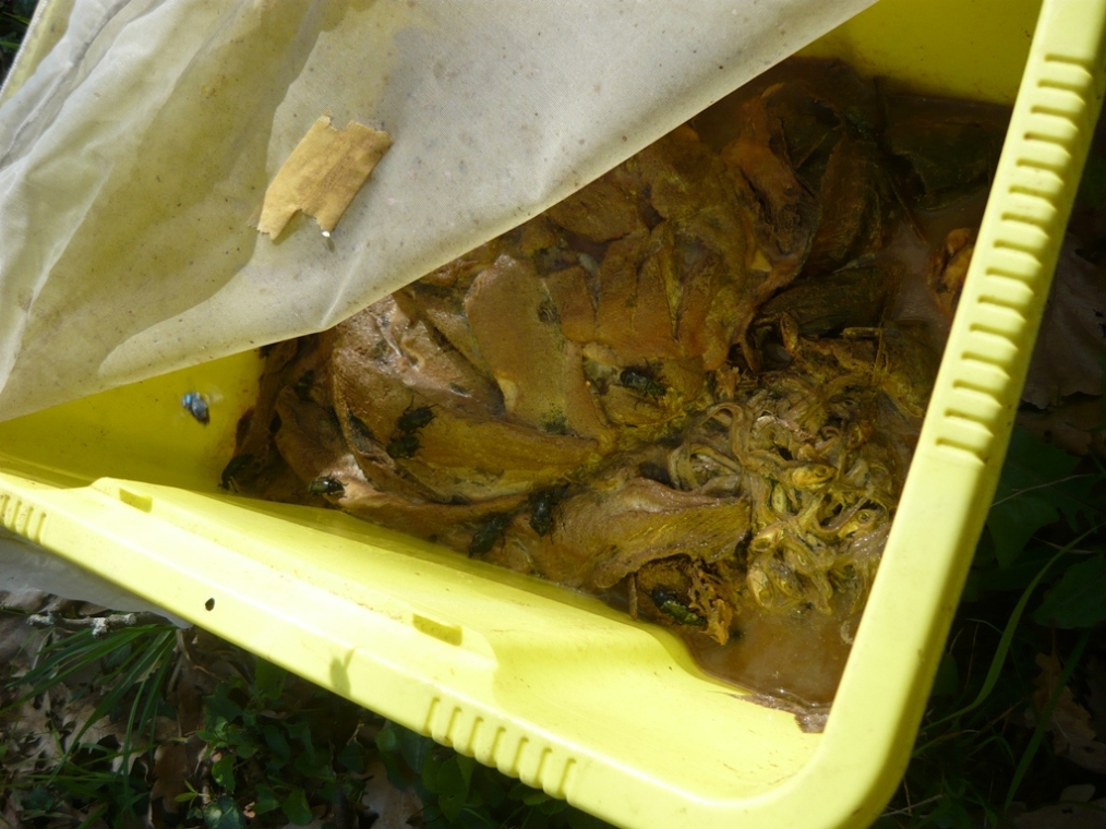 I necrofori e gli altri coleotteri mangiatori di cadaveri o di larve necrofile ci arrivano comunque. In posti frequentati da cani, volpi o cinghiali io metto le trappole appese agli alberi, eppure ci vanno senza problemi.