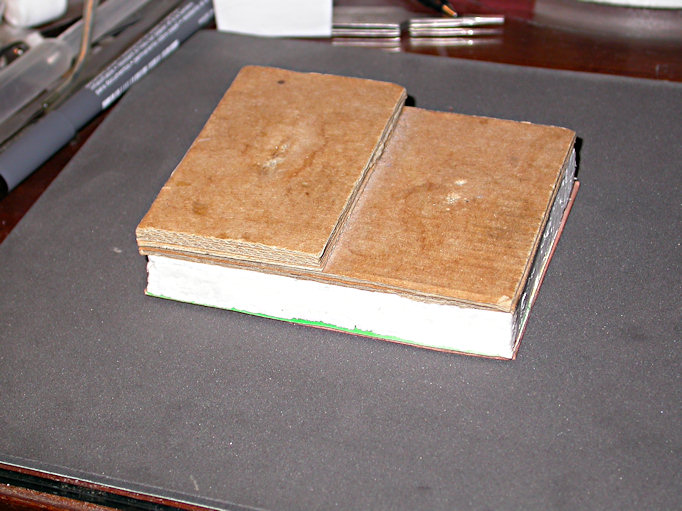 Se vuoi una cosa più duratura ed elegante, usa una tavoletta di legno al posto del polistirolo (nella zona corrispondente al punto in cui farai il buco dello spillo devi fare un buco più grande col trapano, va bene dai 4-5 mm in su, che passi da parte a parte il legno. Sotto ci incolli un rettangolo di compensato sottile, o del solito cartoncino, e lo stesso sopra (ma ricordati di farci il buchetto per lo spillo.