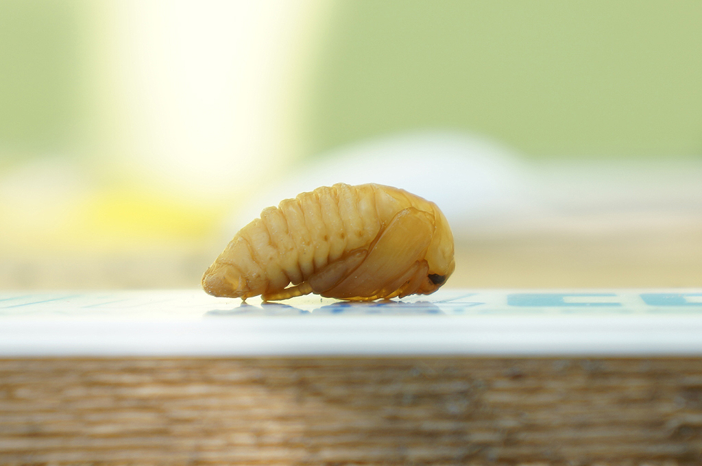 Il 15 Giugno è iniziato l'impupamento con il risultato visibile nella foto seguente. La pupa misurava all'incirca 2 cm.