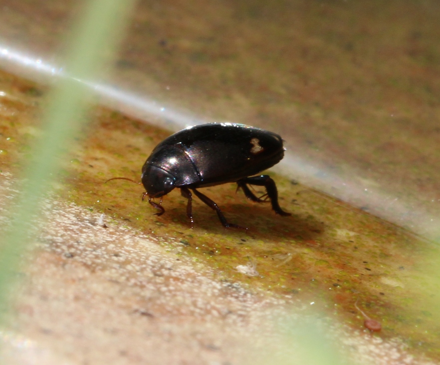 Innanzitutto, ho potuto "beccare" un Agabus dydimus, specie tra le più abbondanti nel mio laghetto, in procinto di lasciarlo. Il coleottero dopo poco si è involato, putroppo non ho potuto immortalarlo nel momento in cui spiccava il volo perchè distratto da altro!