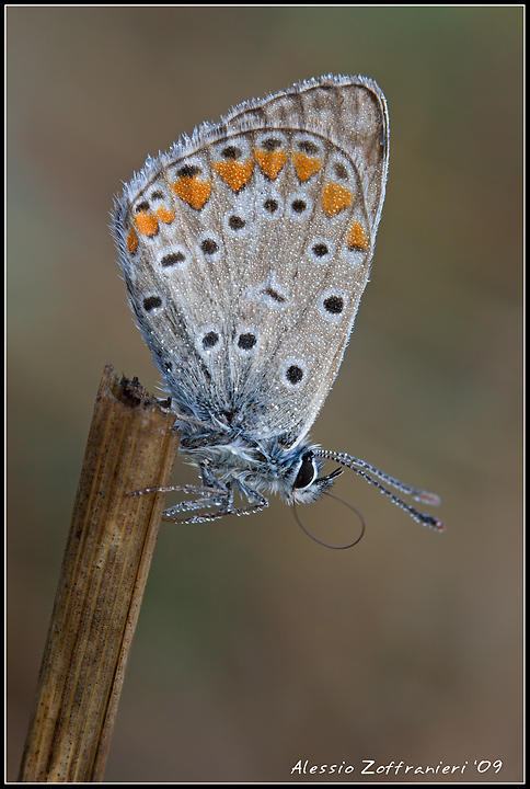Ero indeciso con Polyommatus hispanus perchè l'ho fotografata in settembre, 20/09/2009, ma la macchia cuneiforme sulle ali posteriore in hispanus non c'è.