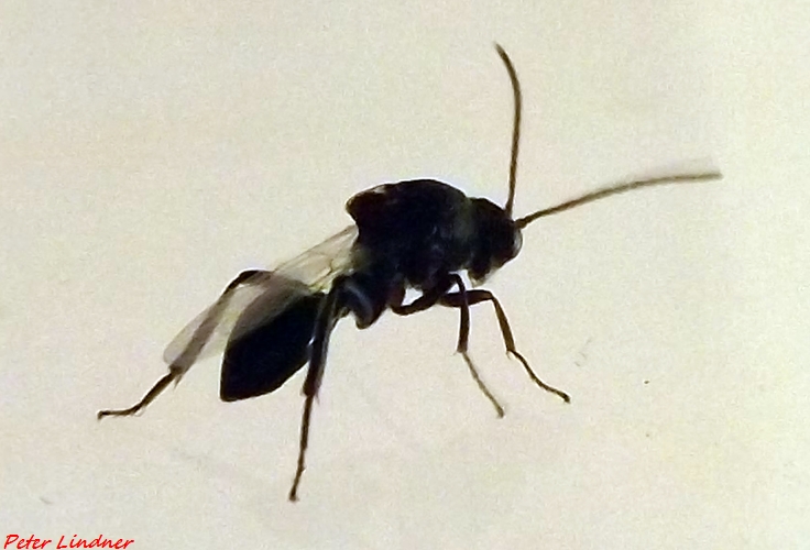 Ciao a tutti! a inizio giugno ho fotografato uno strano bozzolo, ho aspettato per vedere cosa ne sarebbe uscito. Verso fine giugno ha fatto capolino questo insetto, piccolo (circa 2 mm) e veloce, difficile da fotografare. Allego comunque la foto per chiedere lumi e capire almeno se si tratta di un dittero o un imenottero :) Qualcuno lo riconosce?? :D