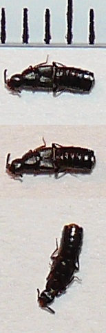 Posto le foto di tre esemplari, tutti inferiori ai 4 mm, appartenenti a specie da identificare e probabile appartenenza alla famiglia Staphylinidae, ma di genere sconosciuto (Aleochara, Anotylus, Atheta, Bolitochara, Cafius?), raccolti su spiaggia ciottolosa in ambiente arenaceo.