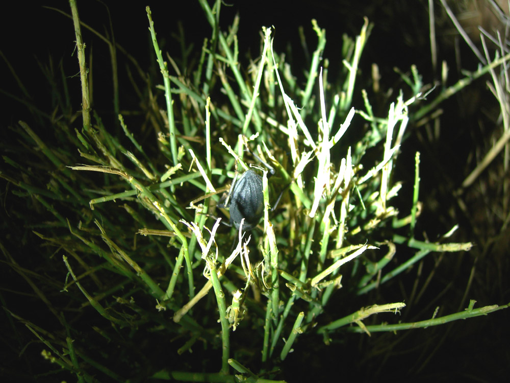 Per trovare qualcosa di verde da mangiare i tenebrionidi deserticoli (in questo caso Pimelia subquadrata valdani) si arrampicano sugli arbusti
