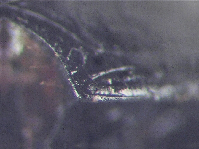 Il risultato sono le foto che accludo, da cui (e dalle mie osservazioni al binoculare) risulterebbe che la marginale si interrompe più o meno in corrispondenza dell’angolo anteriore del pronoto e perciò non passa dietro il capo.