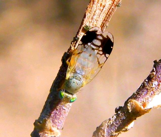 Sul ramo di un tamerice: prima che mi avvicinassi con la macchina fotografica teneva le ali ad angolo retto e le muoveva alternativamente. Lungo circa 7 mm. Tephritide? O appartiene a un'altra famiglia? Grazie a tutti.