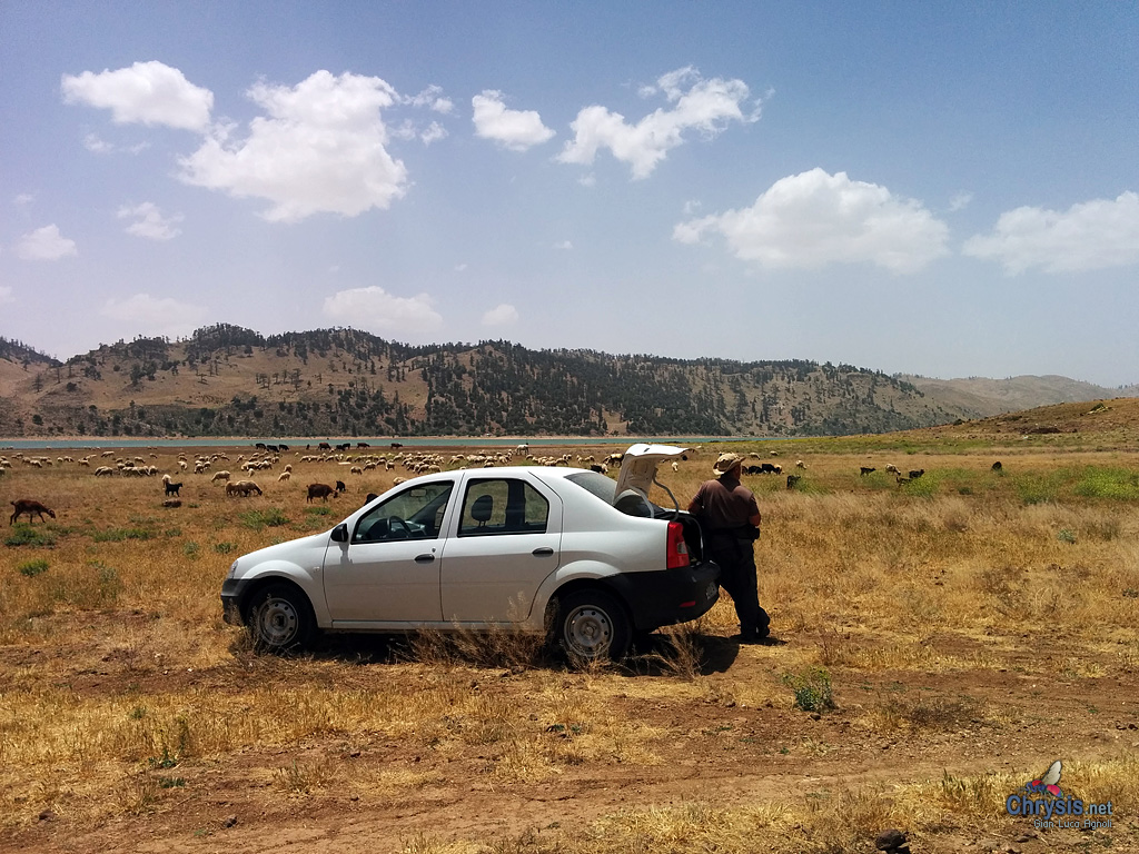 Un po' di foto di Aguelmame Sidi Ali... Macchie di Euforbia con vari imenotteri, Oberea (Coleoptera, Cerambycidae) e tante larve di Sfingidi (Lepidoptera) In questo luogo di frontiera nel pomeriggio arrivavano sempre nuvole e il clima diventava troppo fresco per gli insetti che volano, così cercavamo sotto i sassi, e non sempre trovavamo solo insetti... Un bel rettile, piuttosto grande Un viperotto aggressivo Questa lucertola è corsa via da sotto un masso e si è tuffata nell'acqua trasparente, iniziando a nuotare perfettamente a suo agio nell'acqua Aguelmame Sidi Ali, un luogo davvero notevole, uno dei più belli che abbiamo mai visto