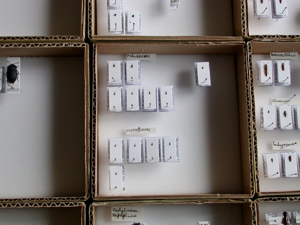 Personalmente, pur conoscendole da molti anni, in seguito ai mei contatti con entomologi americani, non le ho mai adottate, per due motivi: 1 - la mia collezione principale comprende Buprestidi di tutto il mondo, per cui si va da cosini minuscoli di 1,5 mm a bestioni di 7 cm ed oltre. Per i primi le scatolette interne andrebbero bene, ma per i secondi assolutamente no. E sistemare parte della collezione in un modo e parte in un altro mi piaceva poco. 2 - in realtà a me servono meno che a molti altri entomologi, visto che per motivi di spazio ho quasi tutte le cassette sistemate tipo libro su piani orizzontali che ricoprono le pareti fin quasi al soffitto, e dopo un periodo iniziali con cassette standard, o anche più grandi (ora utilizzate per parte della collezione generale), ora ho tutti i Buprestidi in cassette a mezza misura, che trovo più pratiche da sistemare e da maneggiare, e che riducono molto anche il problema degli spostamenti degli insetti.